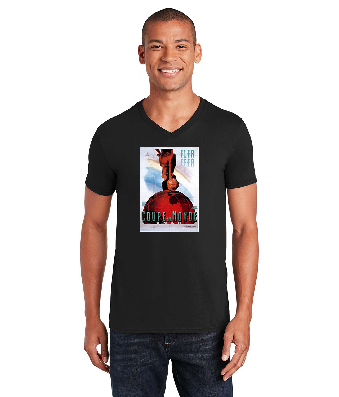 1938 FIFA World Cup France Soccer Logo Symbol Emblem Customized Design on Unisex V-Neck T-Shirt Tee