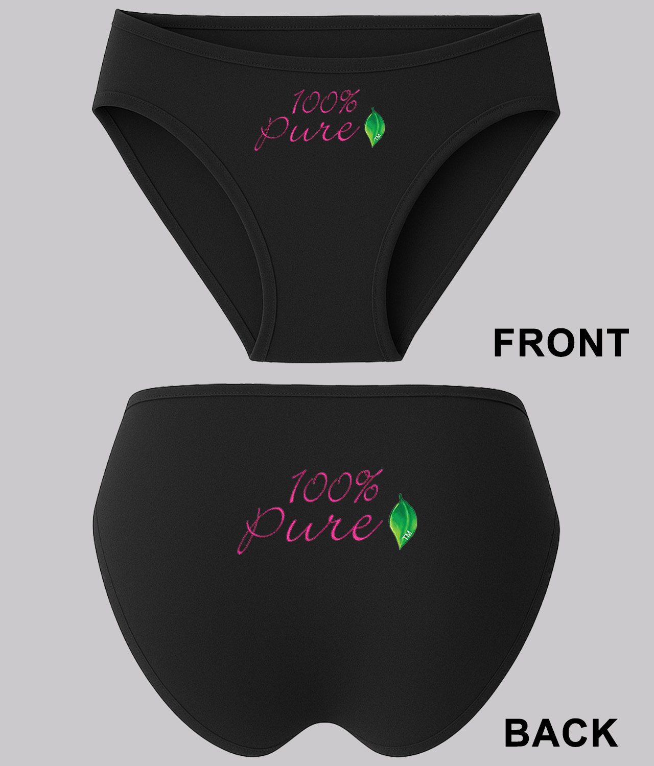 100 % Pure Cosmetics Makeup Black Logo Symbol Emblem Customized Design on Women’s Bikini Brief Underwear