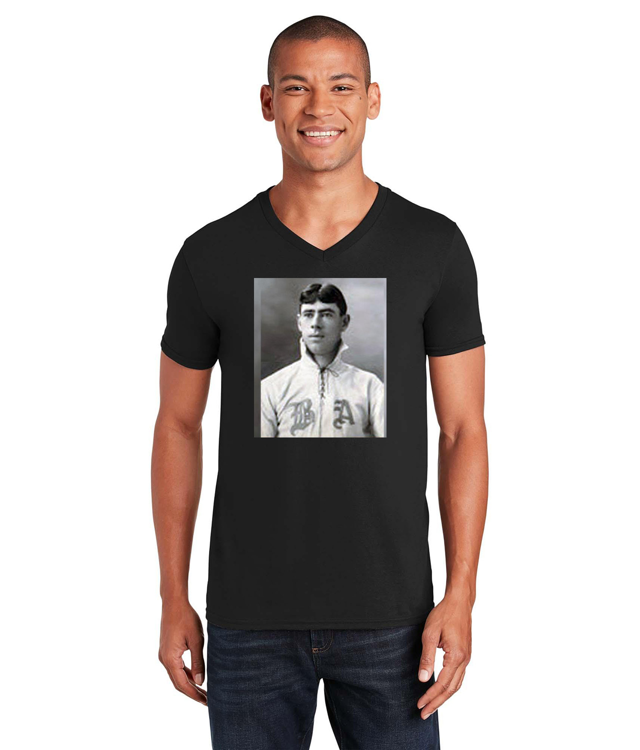 1902 Boston Americans Photo Of A Player Baseball Logo Symbol Emblem Customized Design on Unisex V-Neck T-Shirt Tee