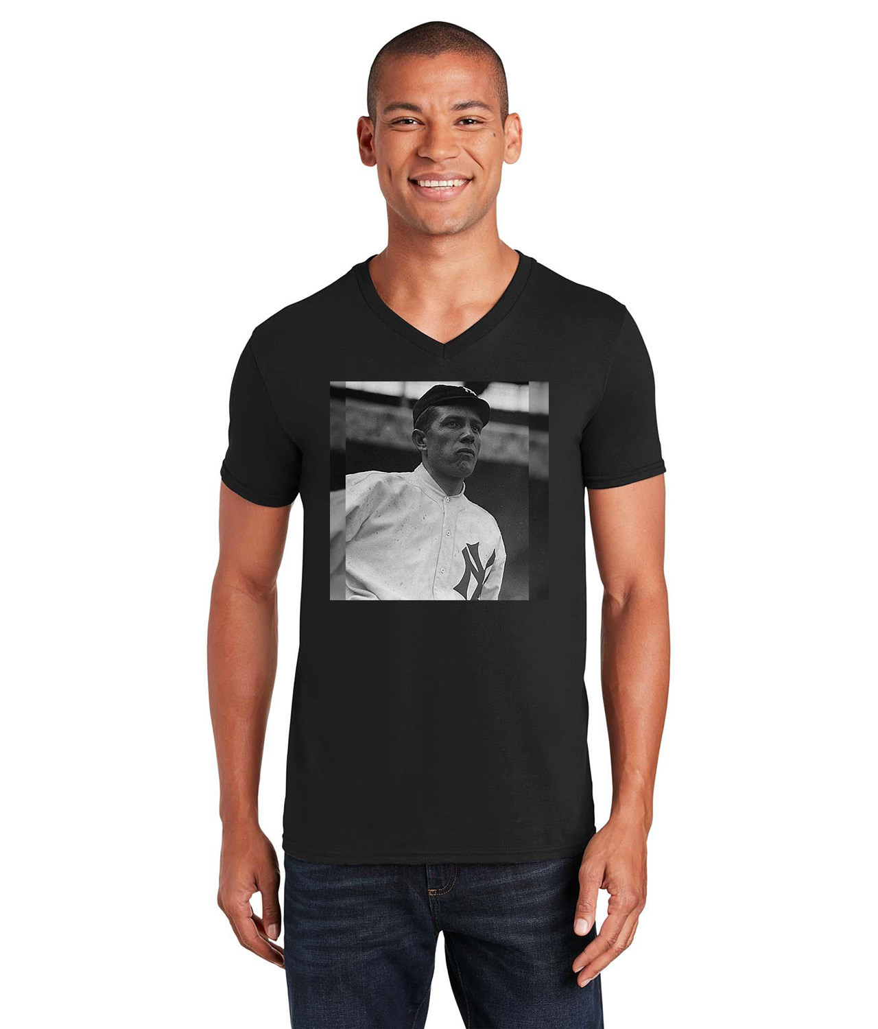 1913 Babe Barton New York Yankees Photo Baseball Logo Symbol Emblem Customized Design on Unisex V-Neck T-Shirt Tee