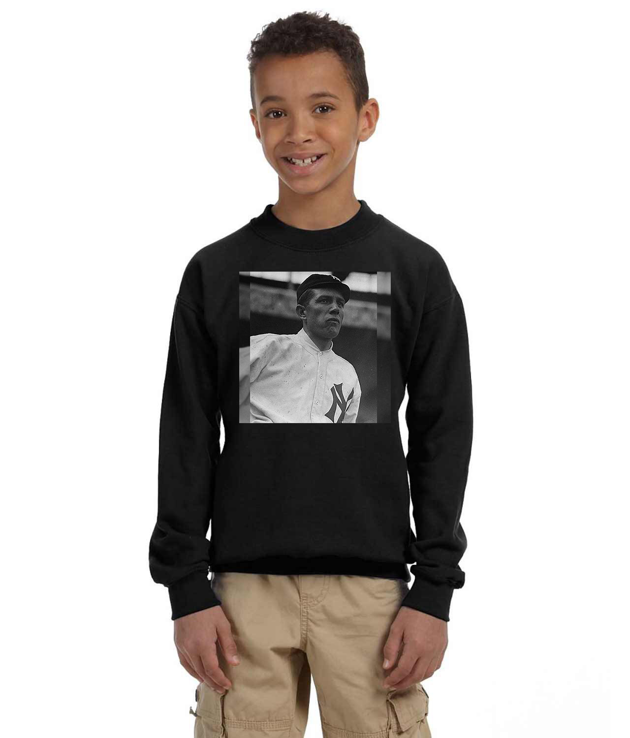 1913 Babe Barton New York Yankees Photo Baseball Logo Symbol Emblem Customized Design on Youth Crewneck Sweatshirt