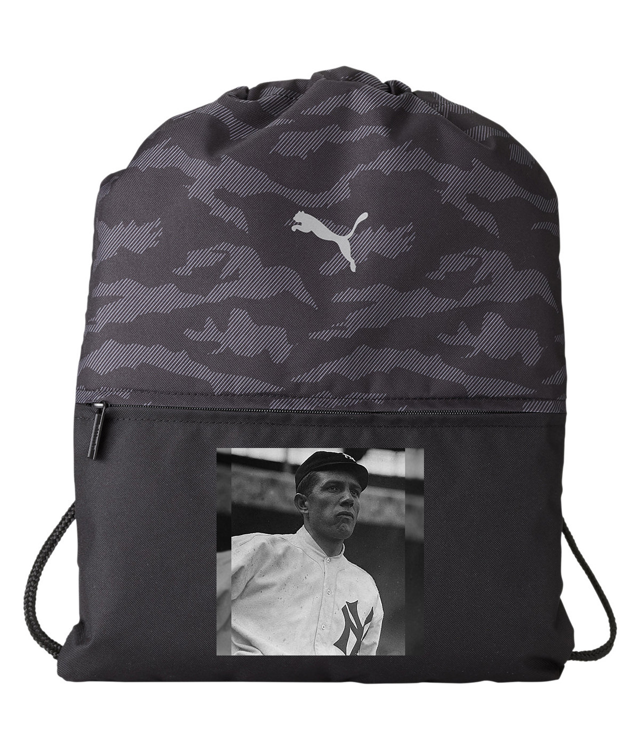 1913 Babe Barton New York Yankees Photo Baseball Logo Symbol Emblem Customized Design on Camo Drawstring Backpack Bag