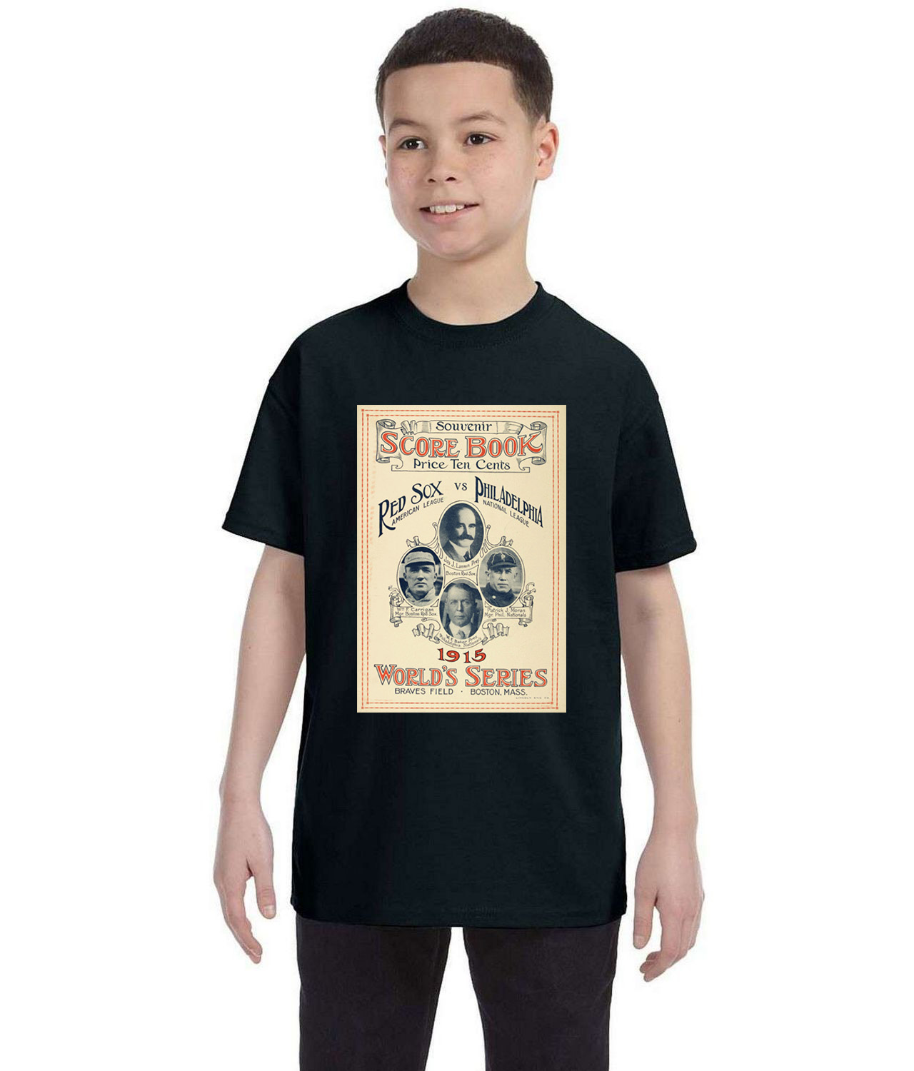 1915 World Series Program – Boston Red Sox Baseball Logo Symbol Emblem Customized Design on Youth T-Shirt Tee