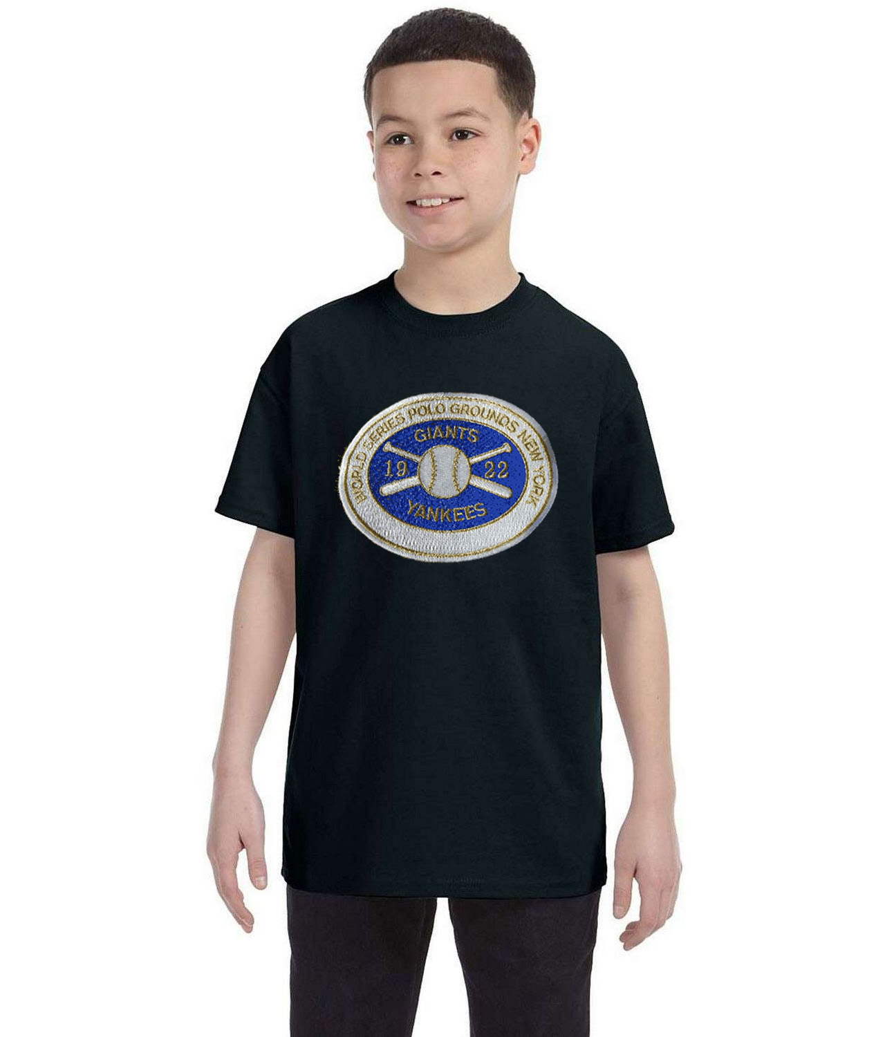 1922 MLB World Series Patch New York Giants vs New York Yankees Baseball Logo Symbol Emblem Customized Design on Youth T-Shirt Tee
