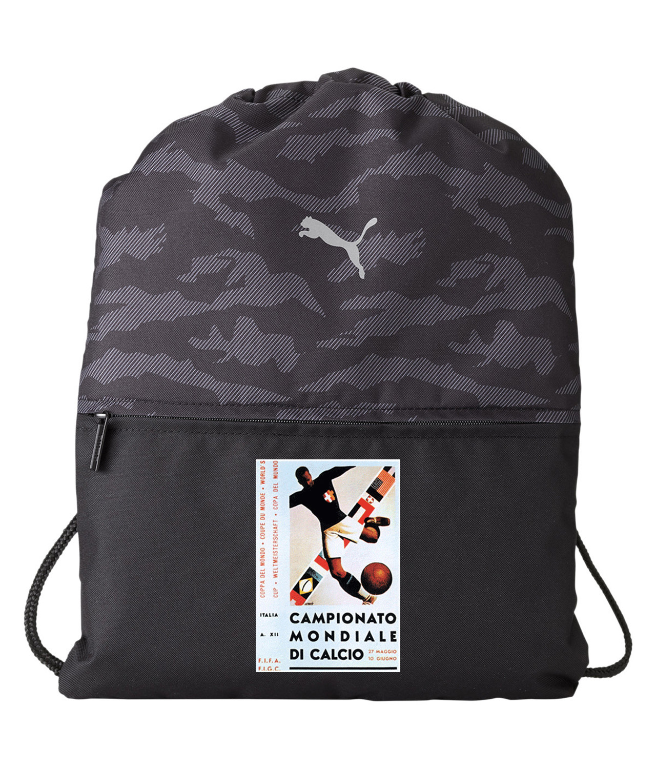 1934 FIFA World Cup Italy Soccer Logo Symbol Emblem Customized Design on Camo Drawstring Backpack Bag