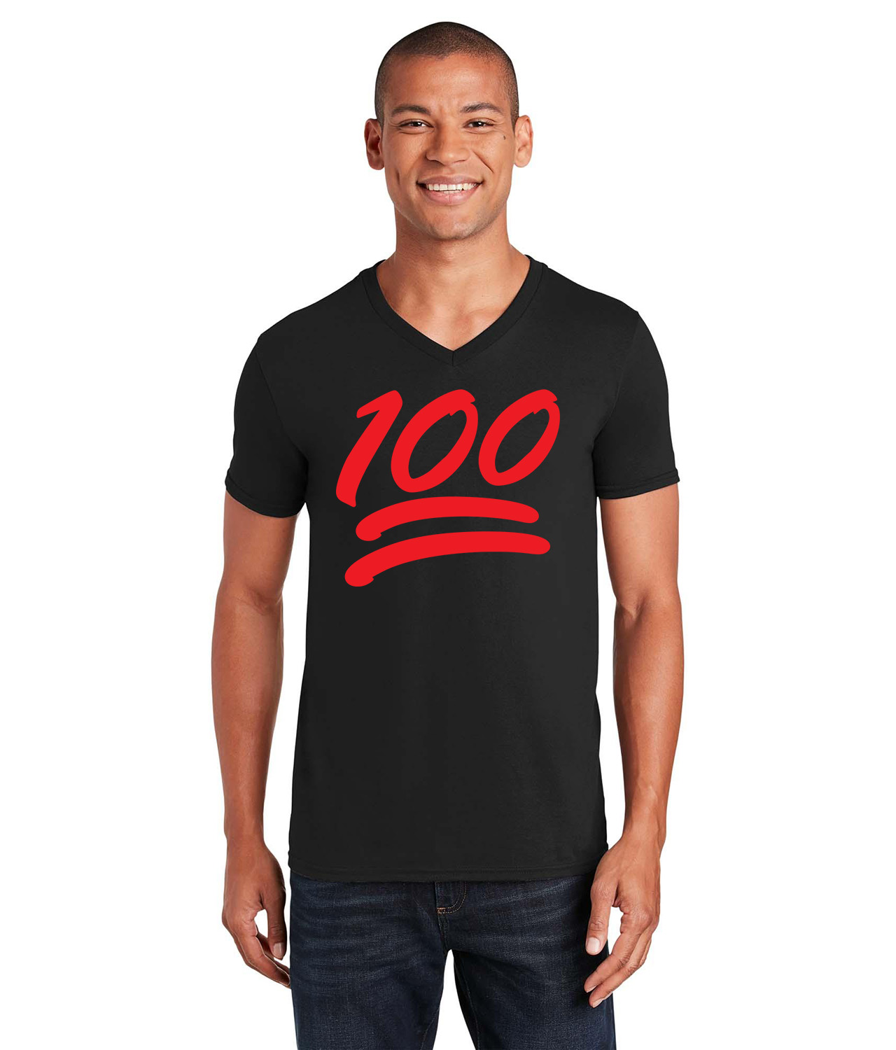 100 Emoji Logo Symbol Emblem Customized Design on Unisex V-Neck T-Shirt Tee