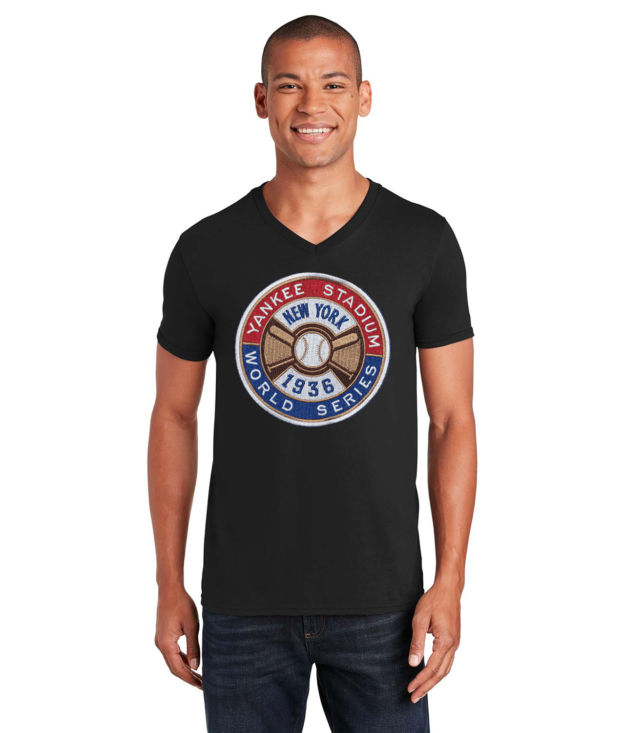 1936 World Champion New York Yankees Baseball Logo Symbol Emblem Customized Design on Unisex V-Neck T-Shirt Tee