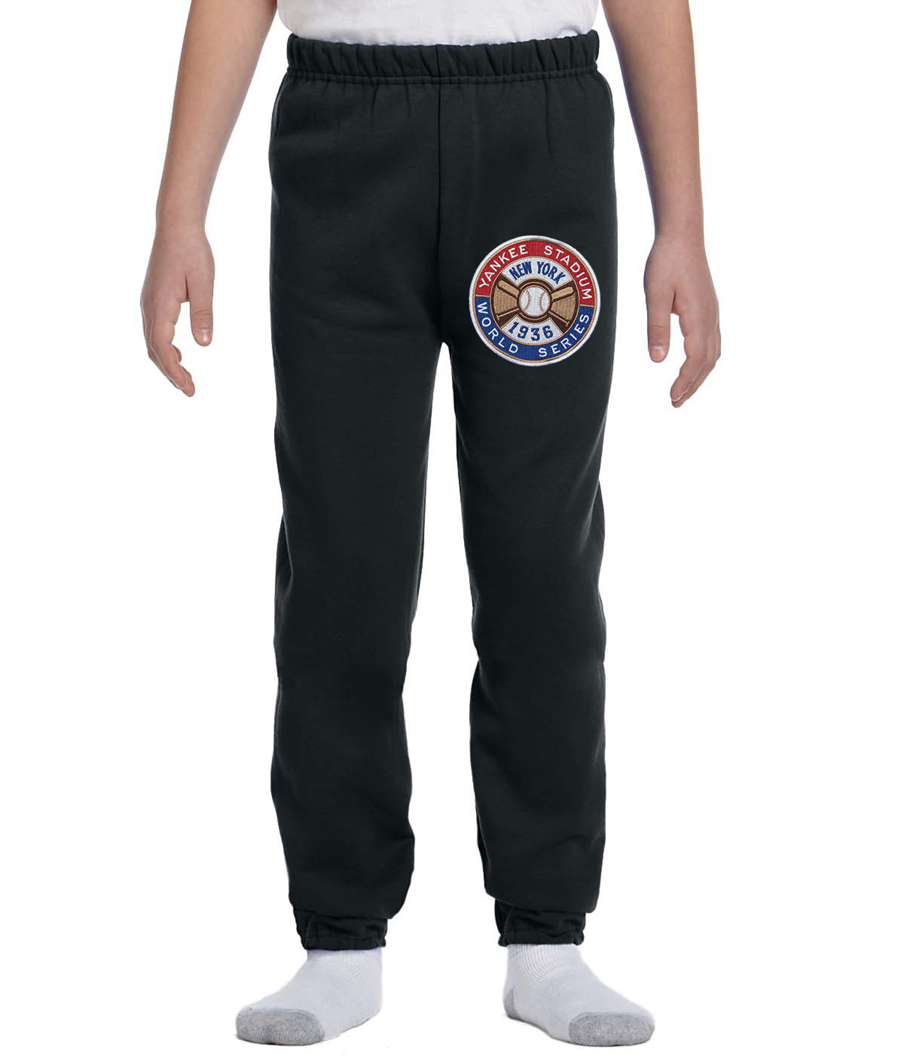 1936 World Champion New York Yankees Baseball Logo Symbol Emblem Customized Design on Youth Closed-Bottom Sweatpants