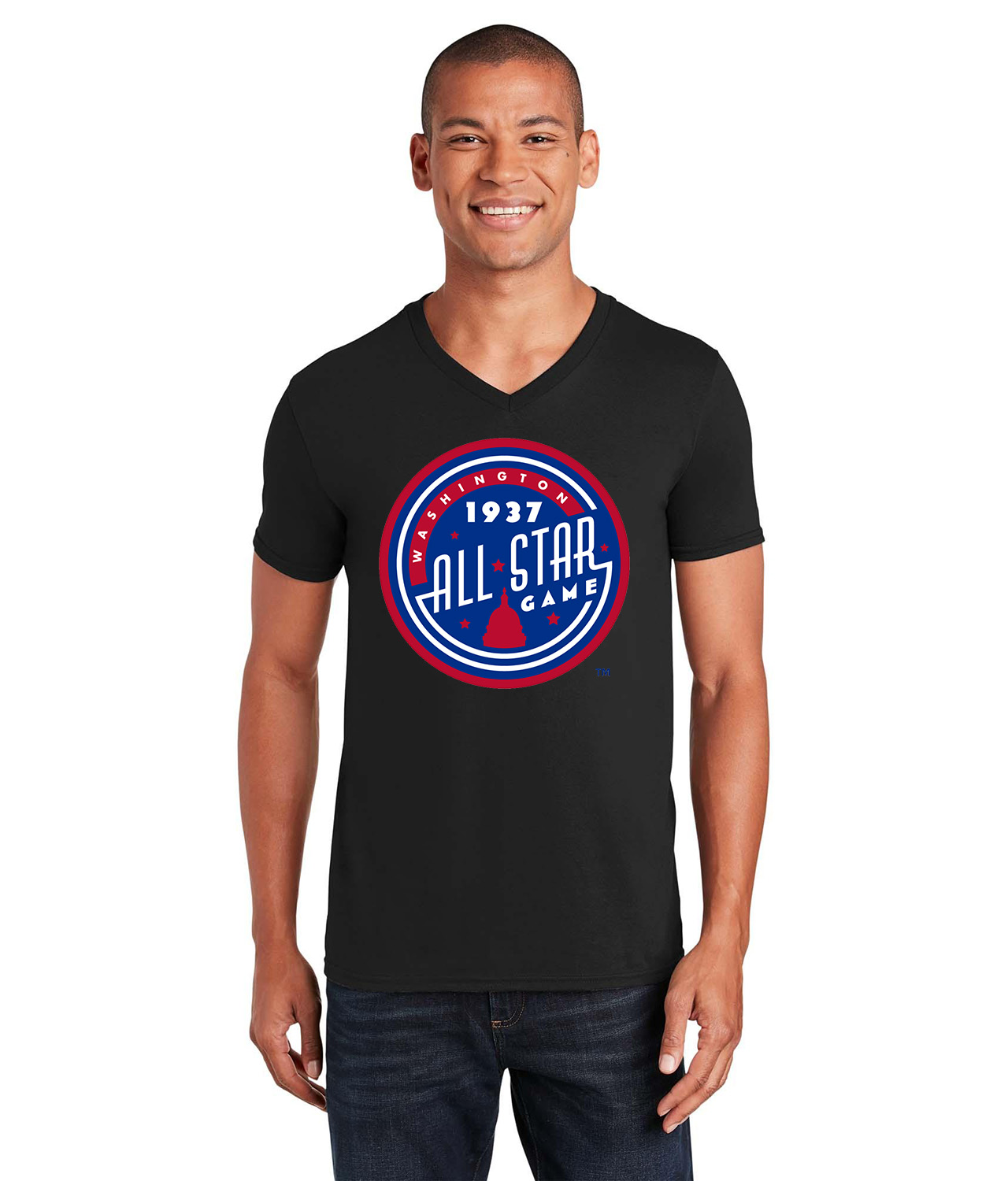 1937 MLB All-Star Game Griffith Stadium Washington DC Baseball Logo Symbol Emblem Customized Design on Unisex V-Neck T-Shirt Tee