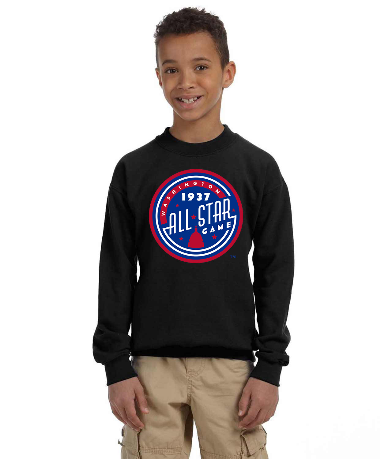 1937 MLB All-Star Game Griffith Stadium Washington DC Baseball Logo Symbol Emblem Customized Design on Youth Crewneck Sweatshirt